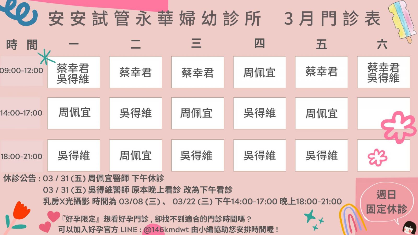 安安試管永華婦幼診所 3月份婦產科門診表