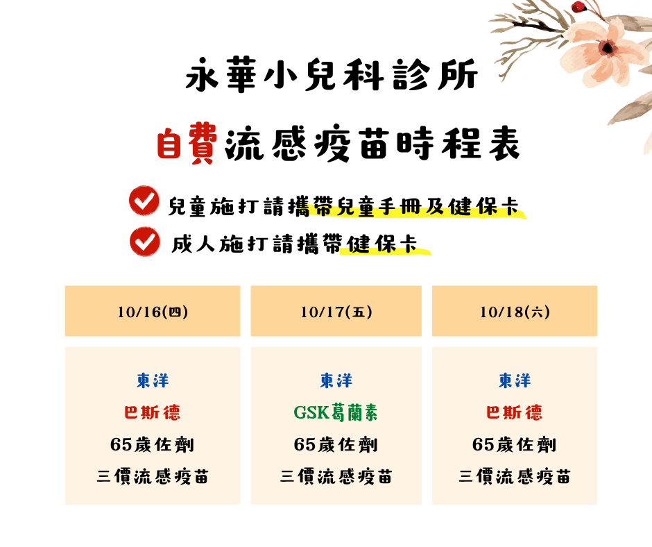 10/16(四)-10/18(六) "自費"流感施打品牌