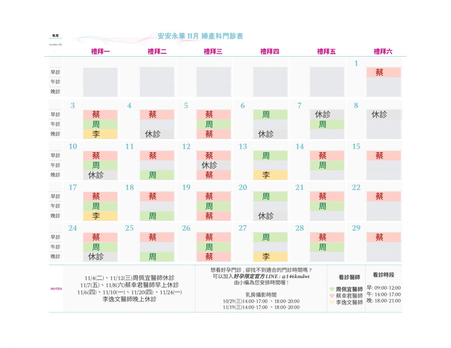 114.11月份婦產科門診表
