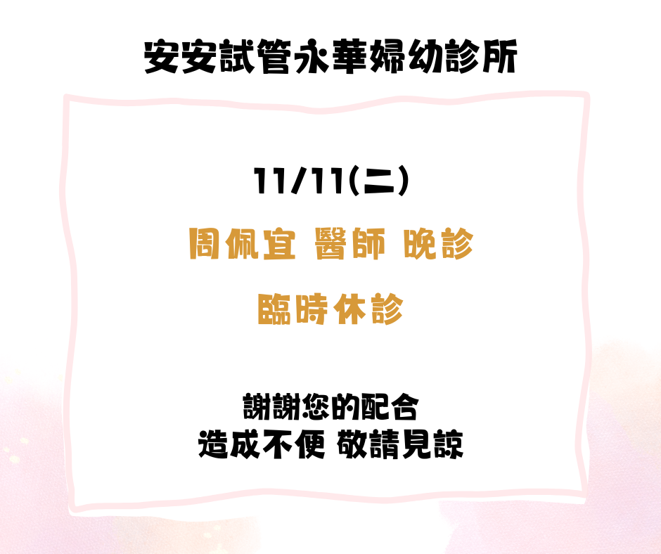 11/11(二)周醫師 晚上臨時休診
