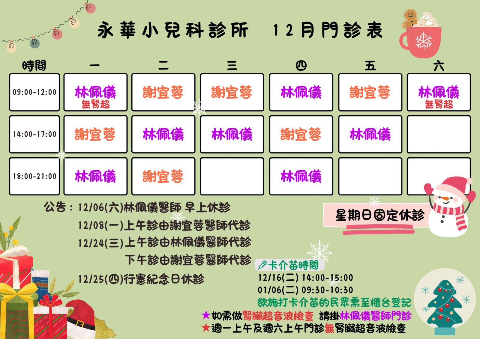 114.12月份小兒科門診表