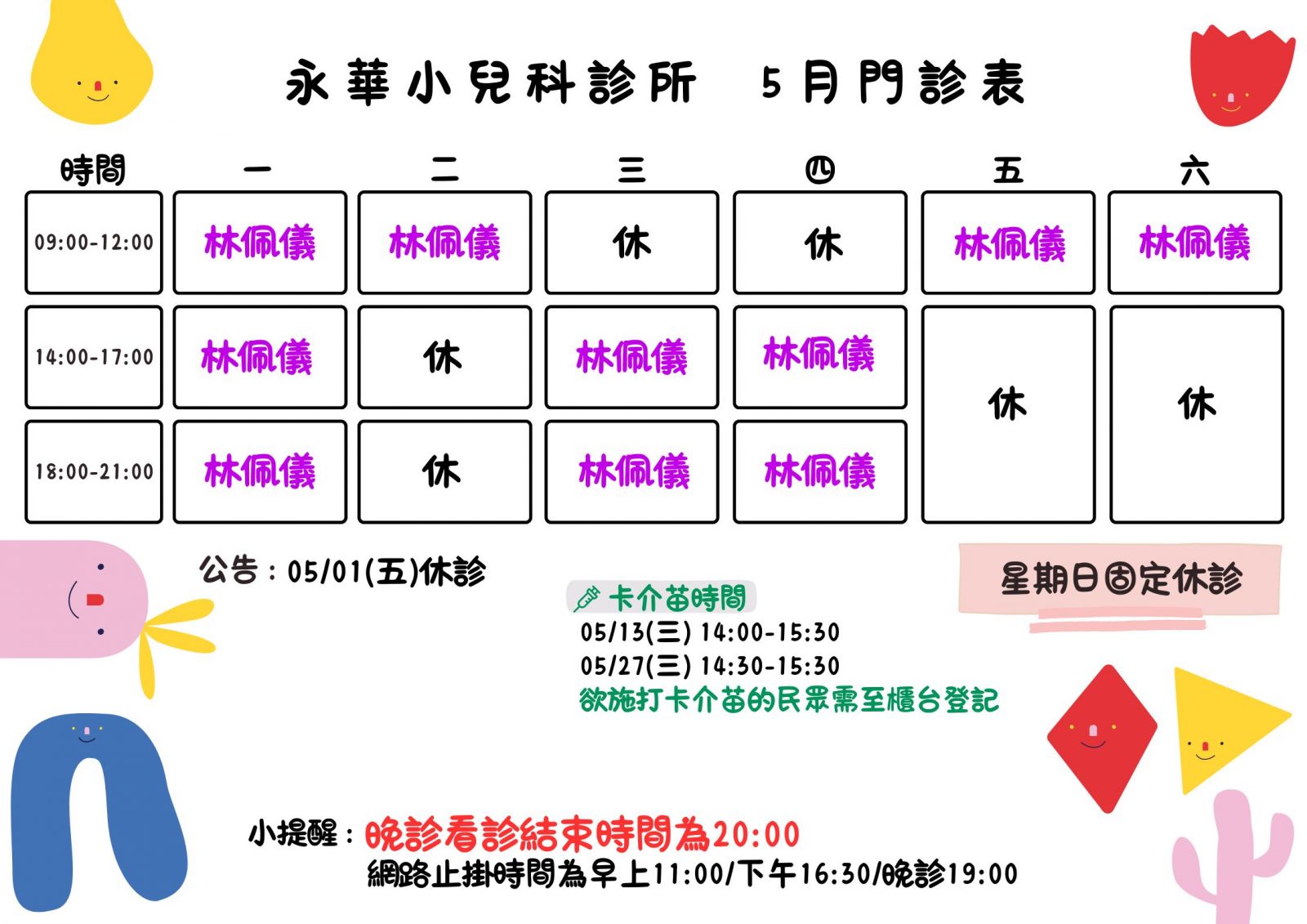 115.5月份小兒科門診表